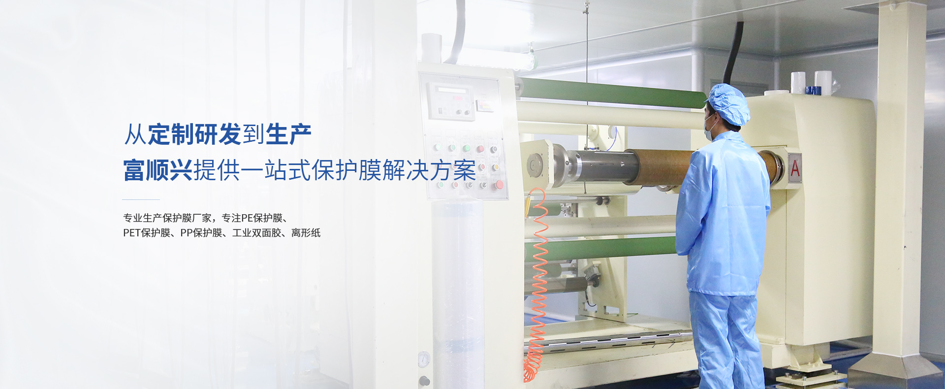 深圳市富順興科技有限公司成立于2000年,專業(yè)生產(chǎn)保護(hù)膜廠家,專注PE保護(hù)膜、PET保護(hù)膜、PP保護(hù)膜、工業(yè)雙面膠、離形紙等產(chǎn)品,廣泛應(yīng)用于電子產(chǎn)品及l(fā)cd液晶顯示器保護(hù)、模切保護(hù)、塑塑膠材質(zhì)保護(hù)、金屬材質(zhì)保護(hù)等領(lǐng)域。